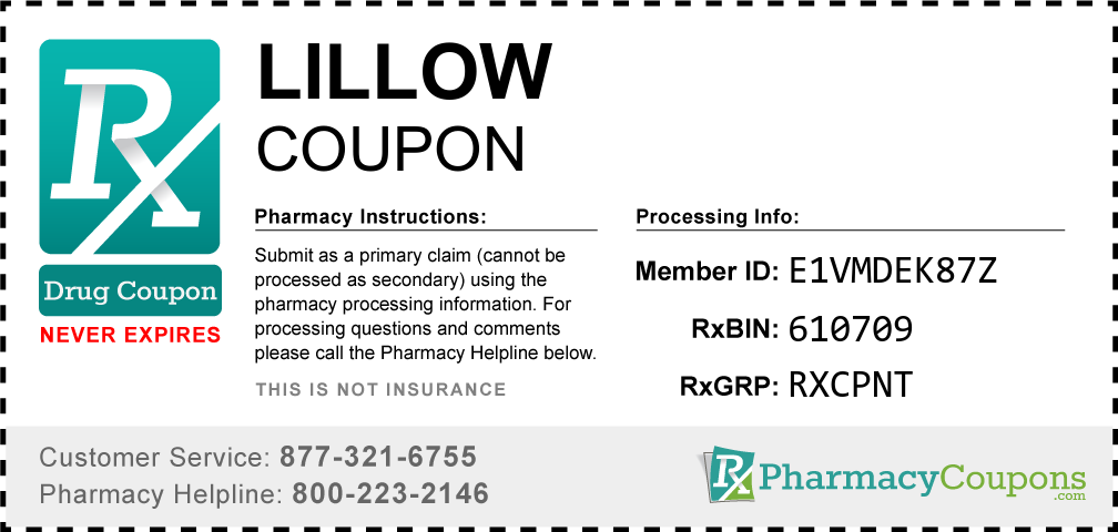 Simply bring the coupon below to the pharmacy, and save on Lillow at CVS, Walgreens, Publix, Safeway, Albertsons, Rite Aid, Target, and many other drug stores! These coupons are free and can be used to save up to 80% on all medications.