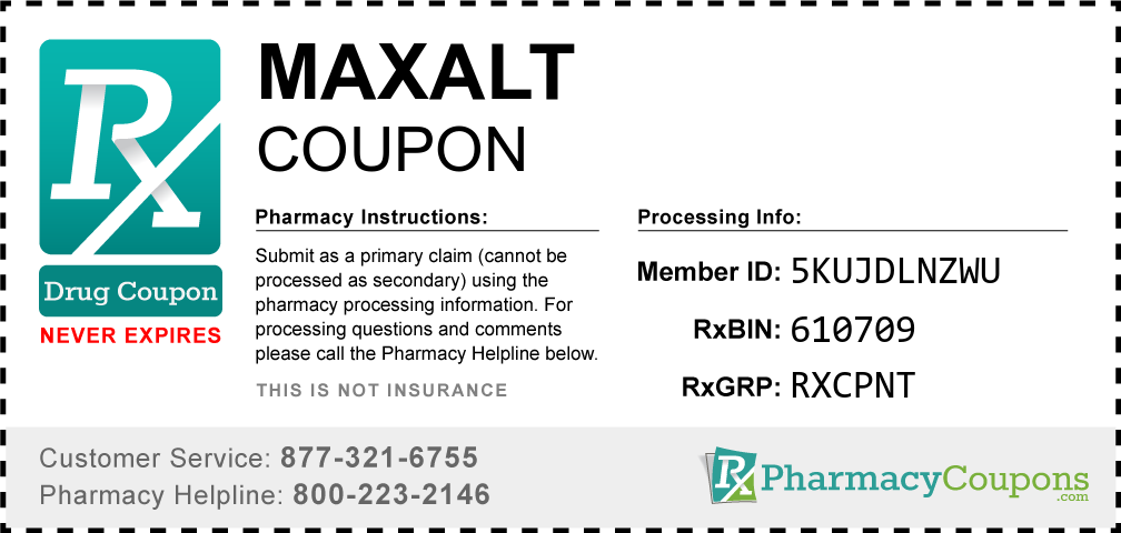 Simply bring the coupon below to the pharmacy, and save on Maxalt at CVS, Walgreens, Publix, Safeway, Albertsons, Rite Aid, Target, and many other drug stores! These coupons are free and can be used to save up to 80% on all medications.