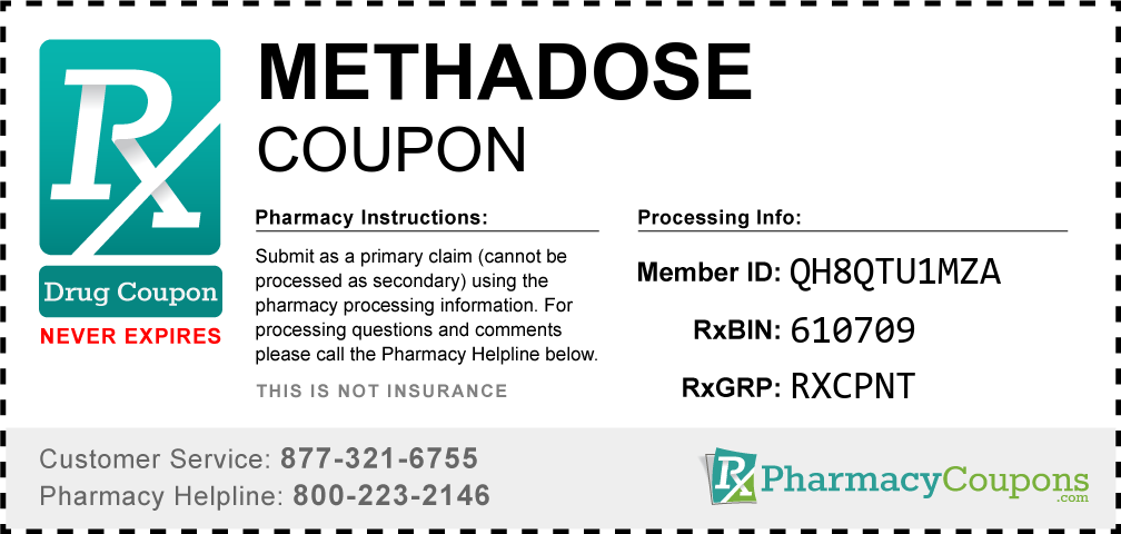 Simply bring the coupon below to the pharmacy, and save on Methadose at CVS, Walgreens, Publix, Safeway, Albertsons, Rite Aid, Target, and many other drug stores! These coupons are free and can be used to save up to 80% on all medications.