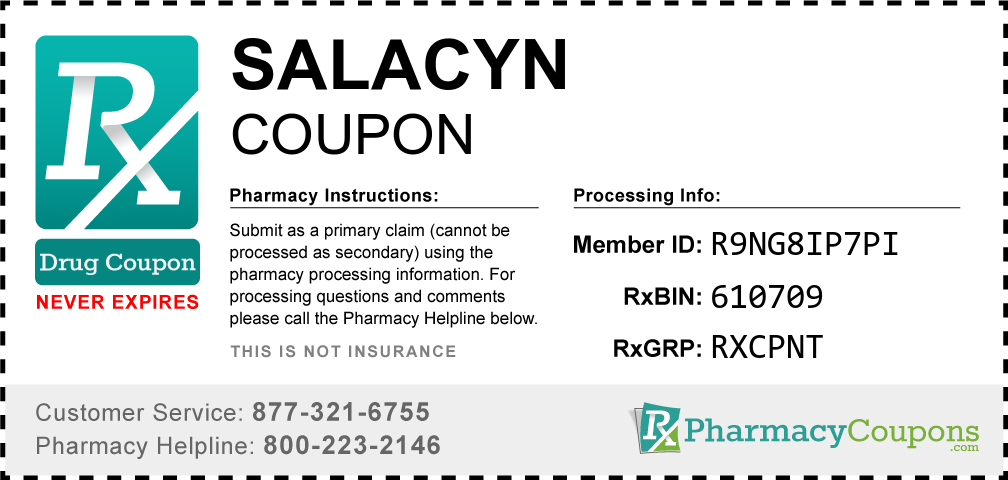 Simply bring the coupon below to the pharmacy, and save on Salacyn at CVS, Walgreens, Publix, Safeway, Albertsons, Rite Aid, Target, and many other drug stores! These coupons are free and can be used to save up to 80% on all medications.