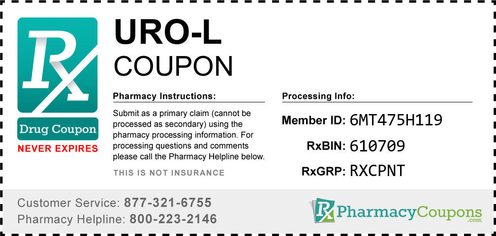 Simply bring the coupon below to the pharmacy, and save on Uro-l at CVS, Walgreens, Publix, Safeway, Albertsons, Rite Aid, Target, and many other drug stores! These coupons are free and can be used to save up to 80% on all medications.